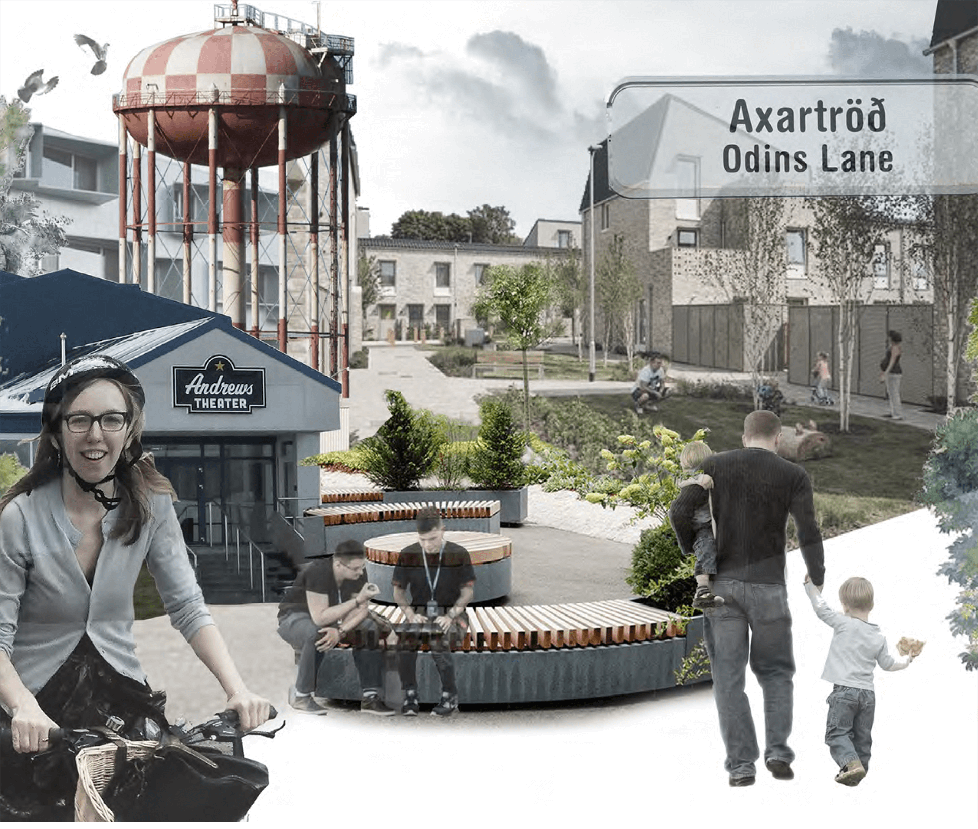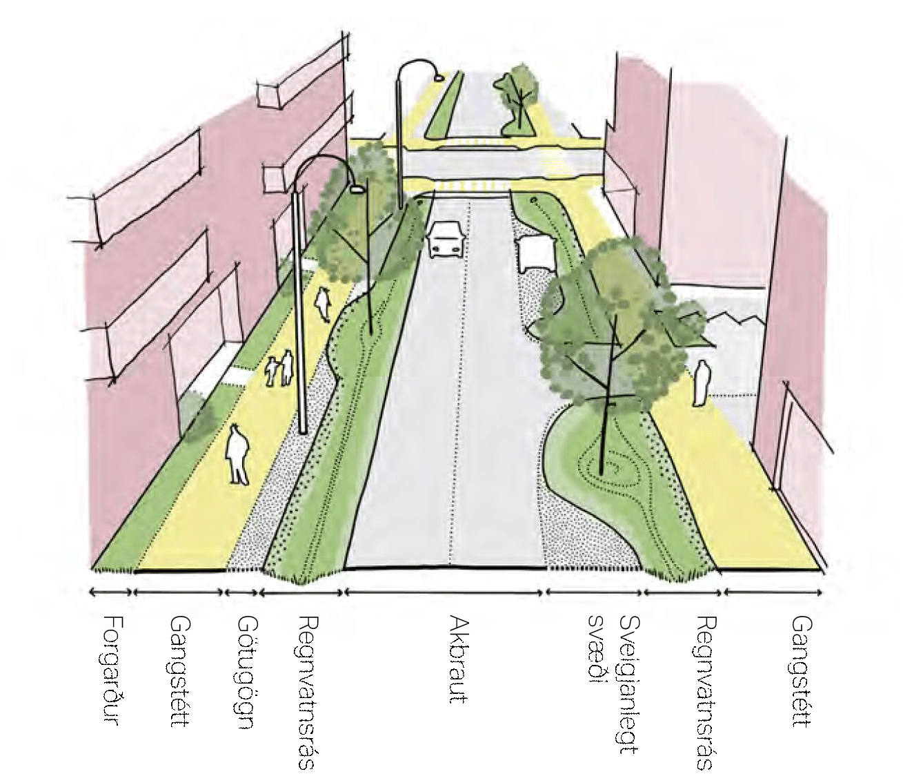 samgöngukerfi, byggðarmynstur, landslagshönnun og mótun staðaranda.